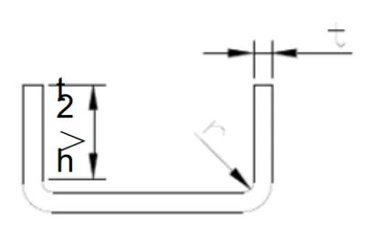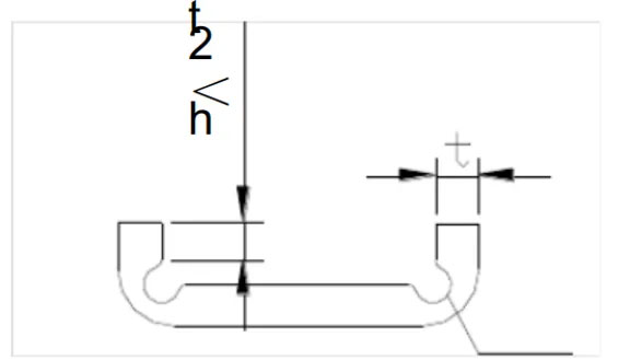 The minimum height of the straight edge of the bent part should be: h > 2t, where t is the material thickness, as shown in the figure below.