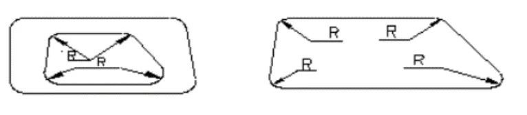 For the shape and inner hole of the stamped part, the connection between the straight line or curve should be a rounded transition, usually with the radius of the rounded arc Rโฅ0.5t (t is the material thickness).