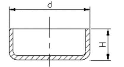 When a circular flangeless drawn part needs to be formed in one step, the ratio of the part height H to the diameter d should be less than or equal to 0.4, that is, H/d โค 0.4, as shown in the figure below.